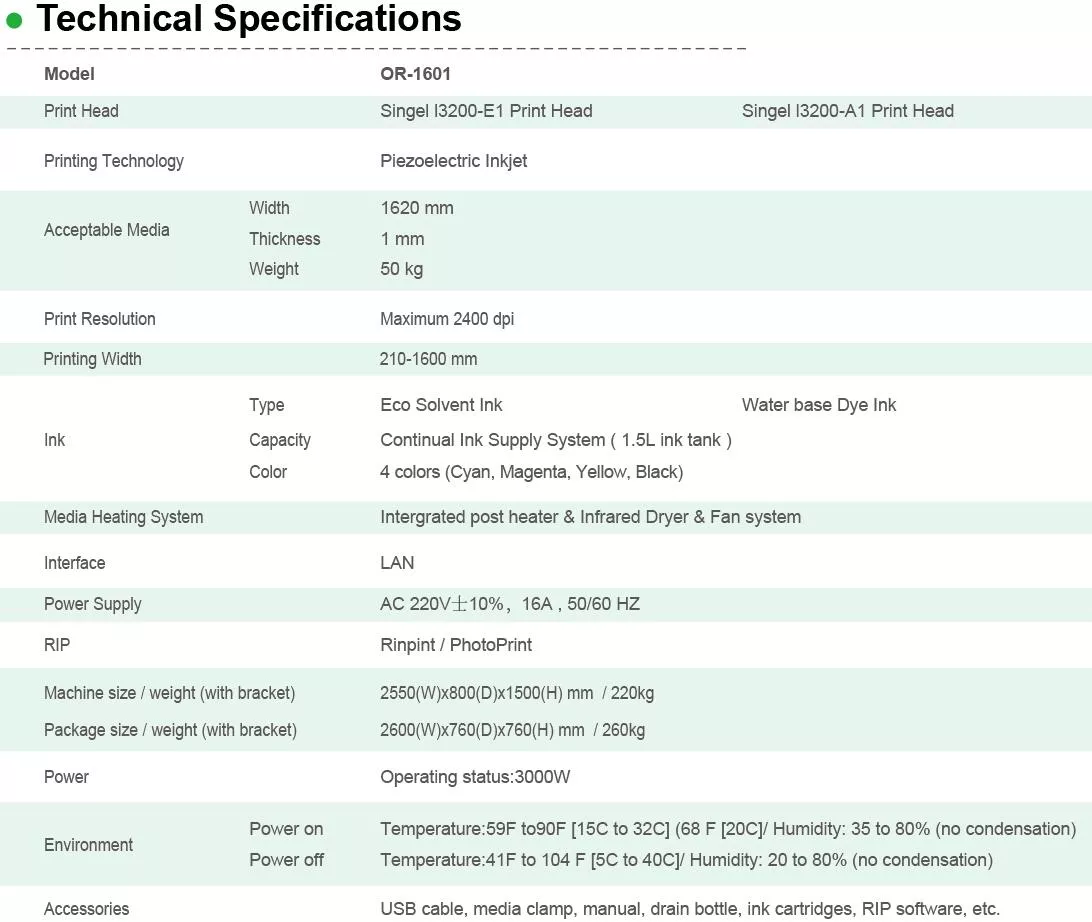 1601 1.6m Water base Dye / Eco Solvent Printer Advertising printer (with Single I3200-A1/E1 Print Head)