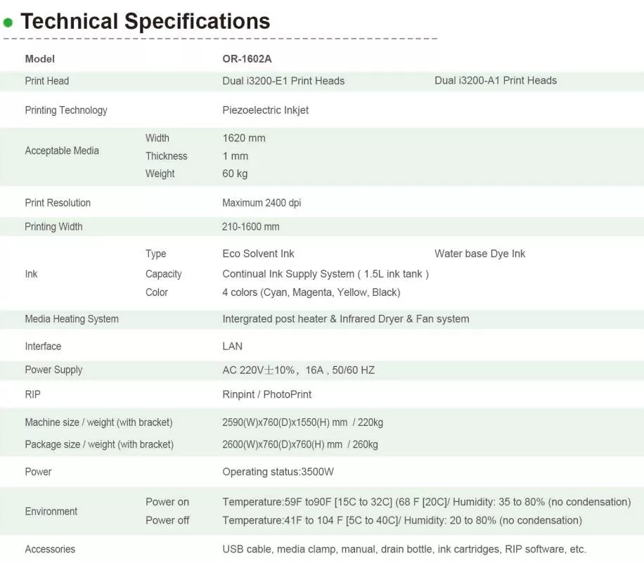 Print Head: 2 X i3200-A1/E1 Print Heads