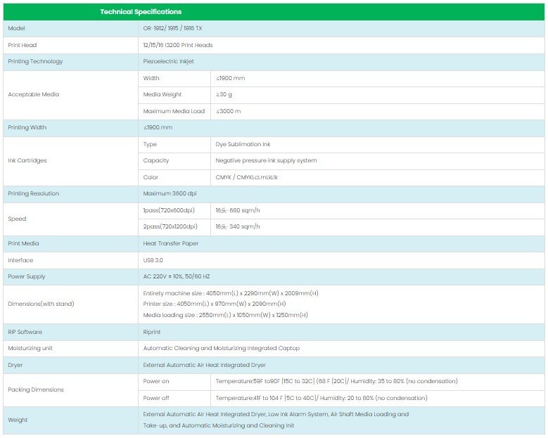1912/1915/1916 TX 1.9m Industrial High Speed Digital Sublimation Printer