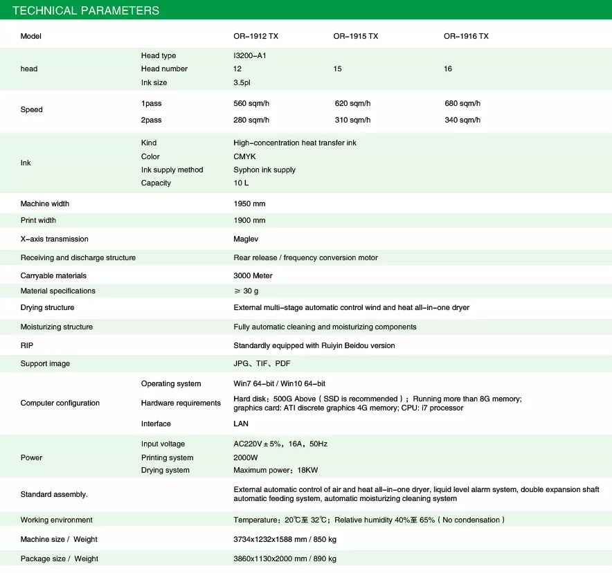 1912/1915/1916 TX 1.9m Industrial High Speed Digital Sublimation Printer EpsonI3200-A1x12/15/16