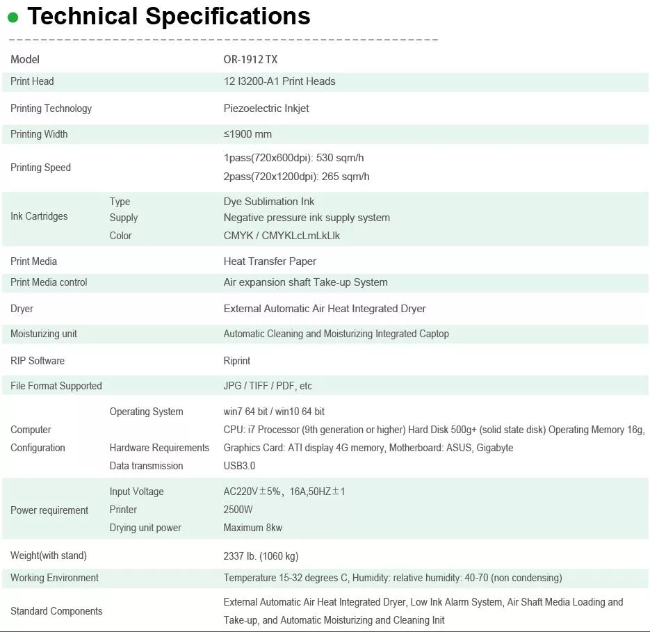1912 TX 1.9m Industrial High Speed Dye Sublimation Printer with 12pcs Epson i3200-A1 heads
