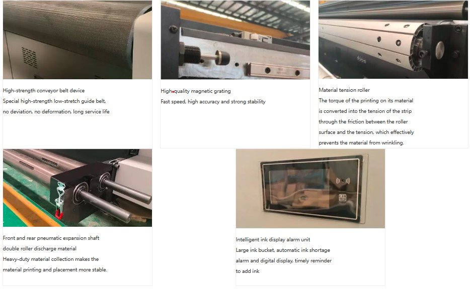 UV coil all-in-one machine, which is a machine specially designed for printing coils and plates. The advantages are high stepping accuracy, good constant tension control system of coil, and stable feeding. The accuracy and speed are guaranteed on the soft material. 3200H coil all-in-one printer adopts Konica KM1024a print heads, which is mainly characterized by high ignition frequency, fast printing speed, point circle, higher accuracy and sharpness.