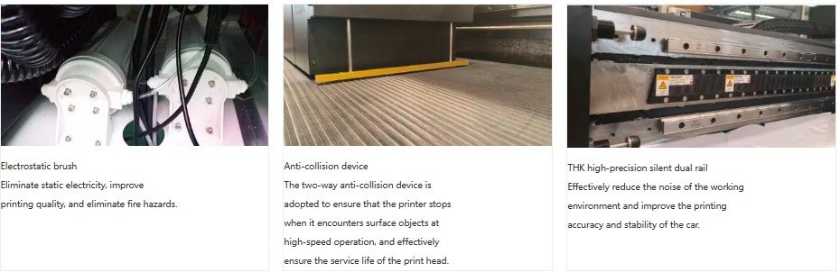 With LED UV curing technology, this uv series printer are mostly competitive in the market which characterizes with excellent quality, high stability and easy operation. Environmentally friendly UV ink meets international environment standards. With multilayer printing to build layered effect.