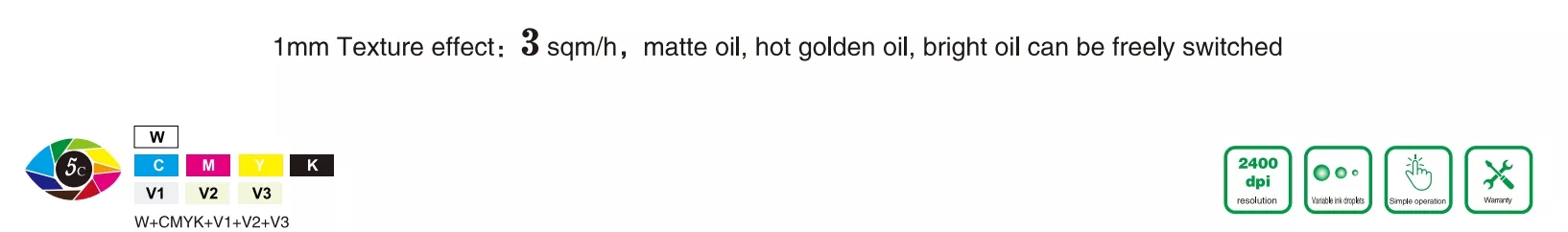 - 1.8m width supports white ink texture, color, matte oil, hot golden oil, and brightening oil enhancement process solutions;