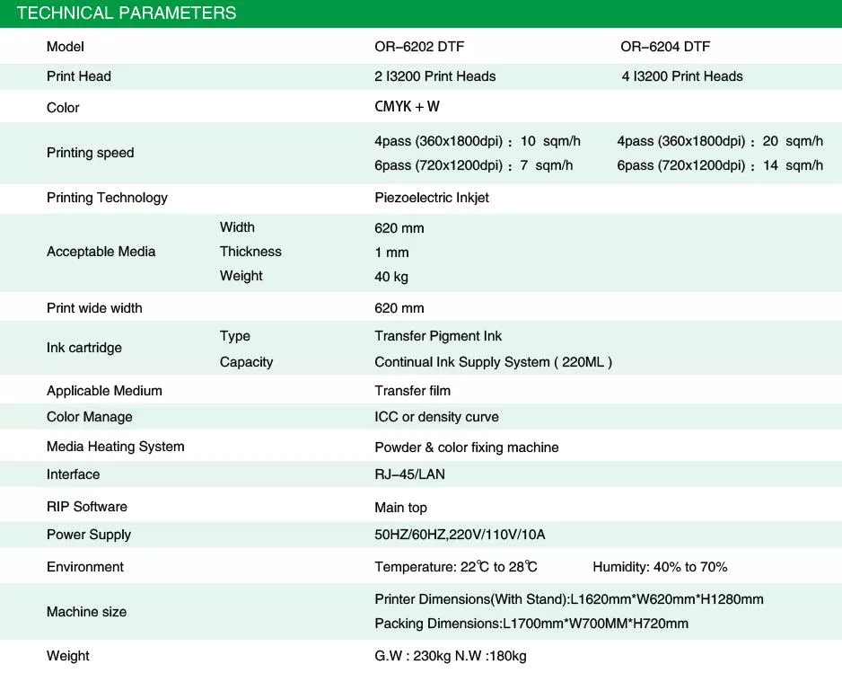 24” DTF DIGITAL HEAT TRANSFER SYSTEMS 6202/7602 DTF Direct to Film Comprehensive Solution @www.oric-systems.com